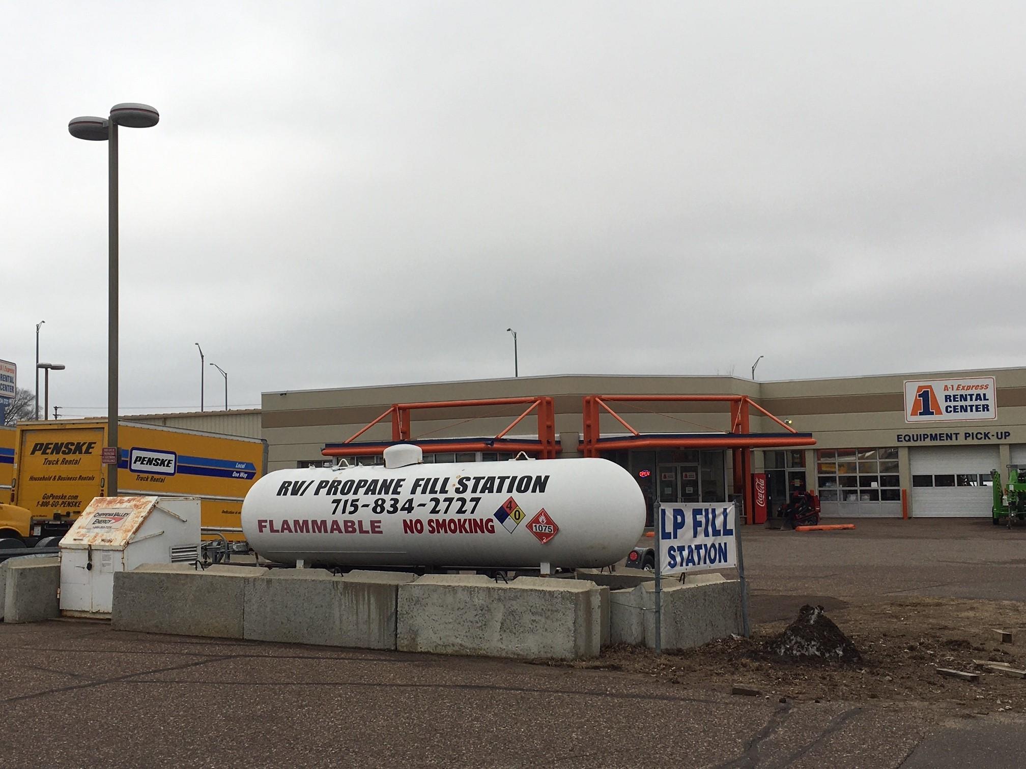 Drive up propane fill station available for portable LP tanks and RVs