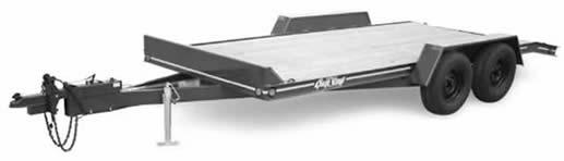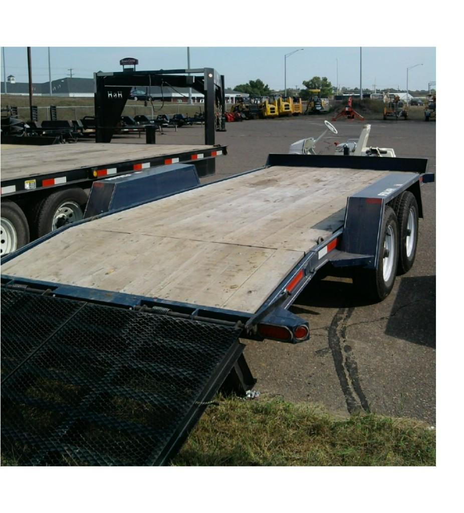 2" Ball, Surge Brake Unit 81" wide X 16' long Non-skid channel ramps formed with legs up to help guide auto on trailer is a safety feature on this model. Low fender height allows opening of car doors even on the smallest of compacts.