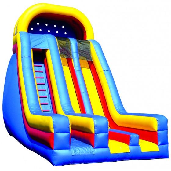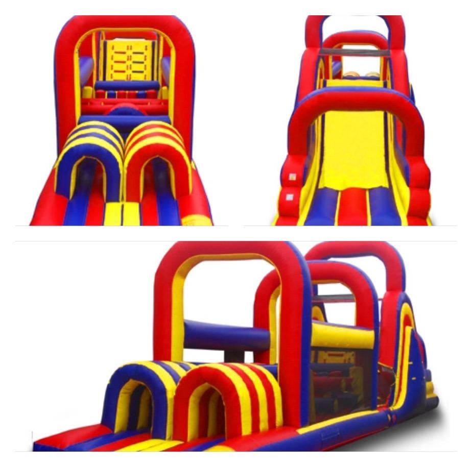Contains jump area, slide with tunnel, and play area on the inside.